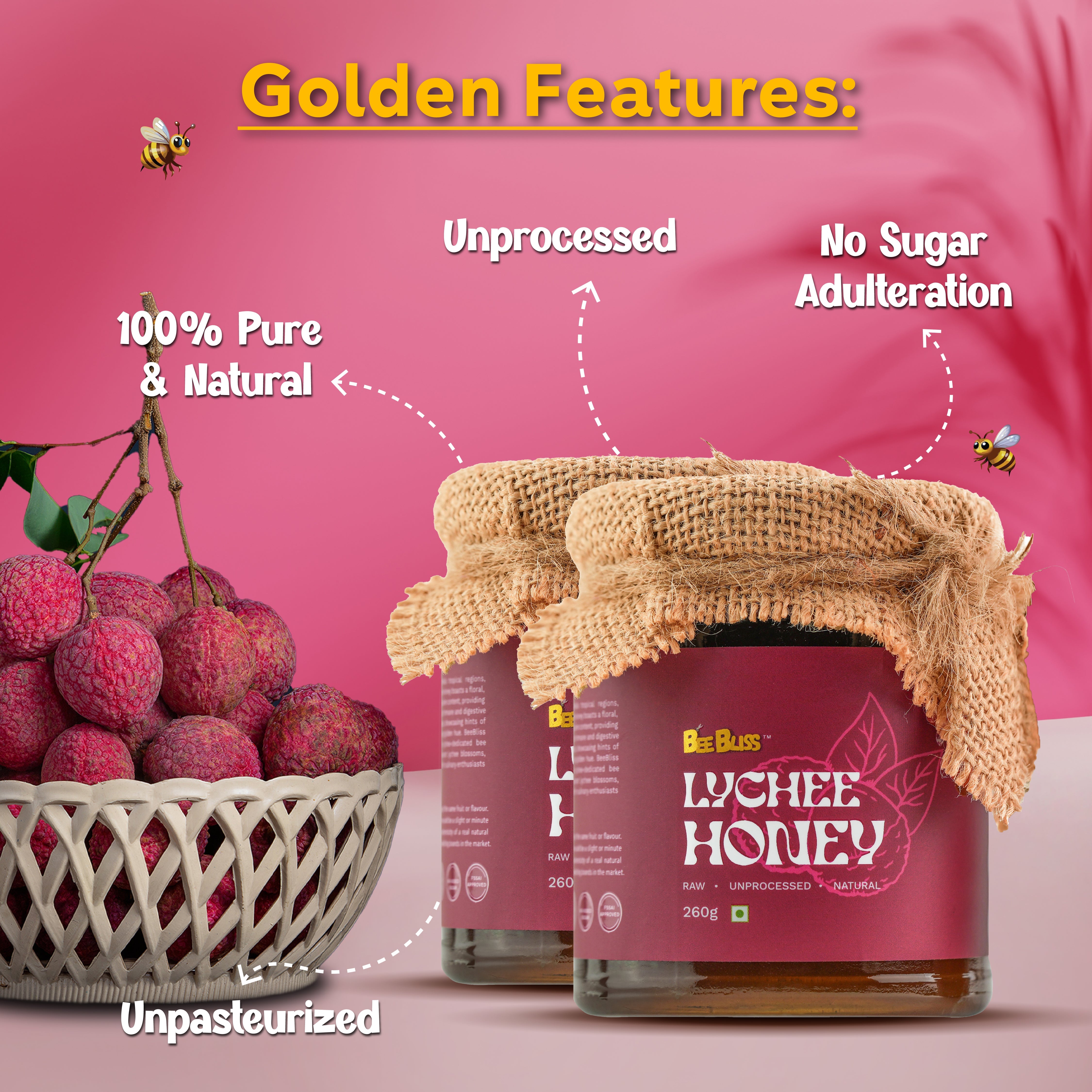Double the delight with our Lychee Honey combo! This tropical treasure is celebrated for its fruity floral sweetness and delicate aroma. Enjoy twice the goodness of Lychee Honey, sourced from single-origin regions and left unprocessed for maximum purity.