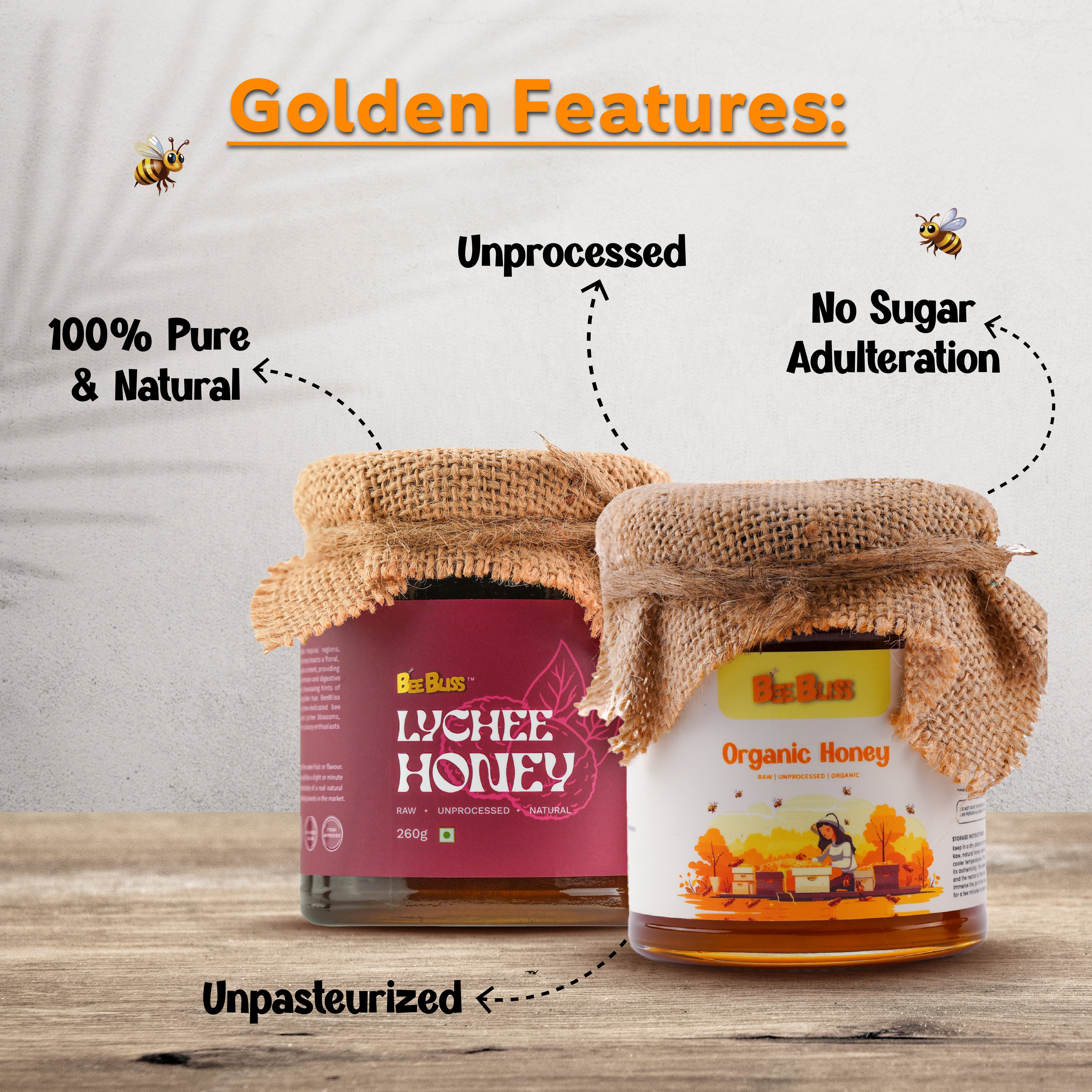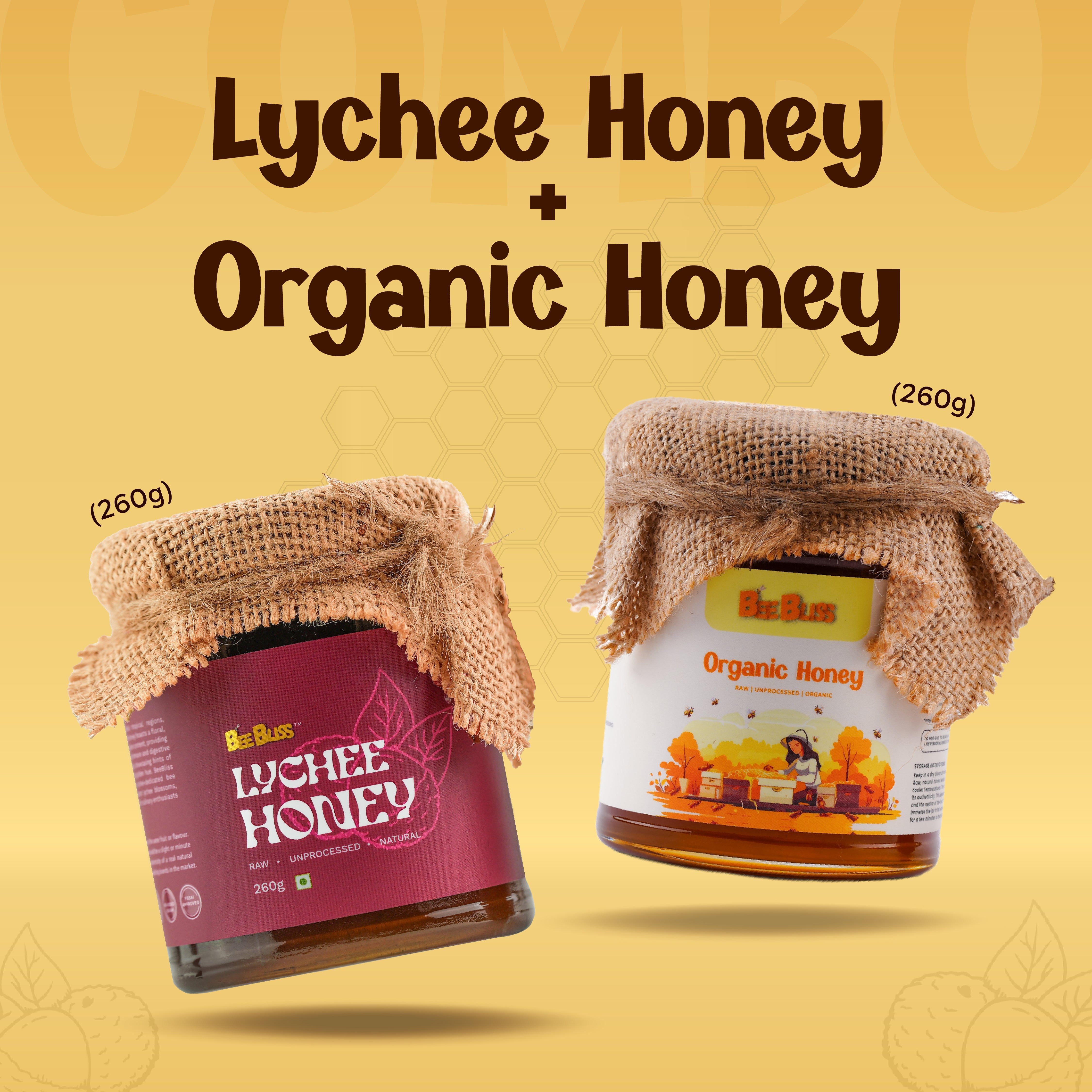 Organic Honey + Lychee Honey 260 GM + 260 GM (Pack of 2)